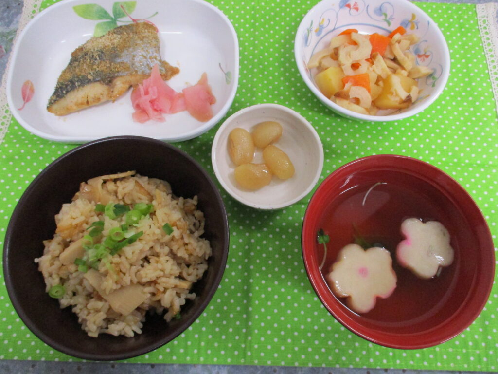 きょうの昼食はイベント食「竹の子ごはん」でした!