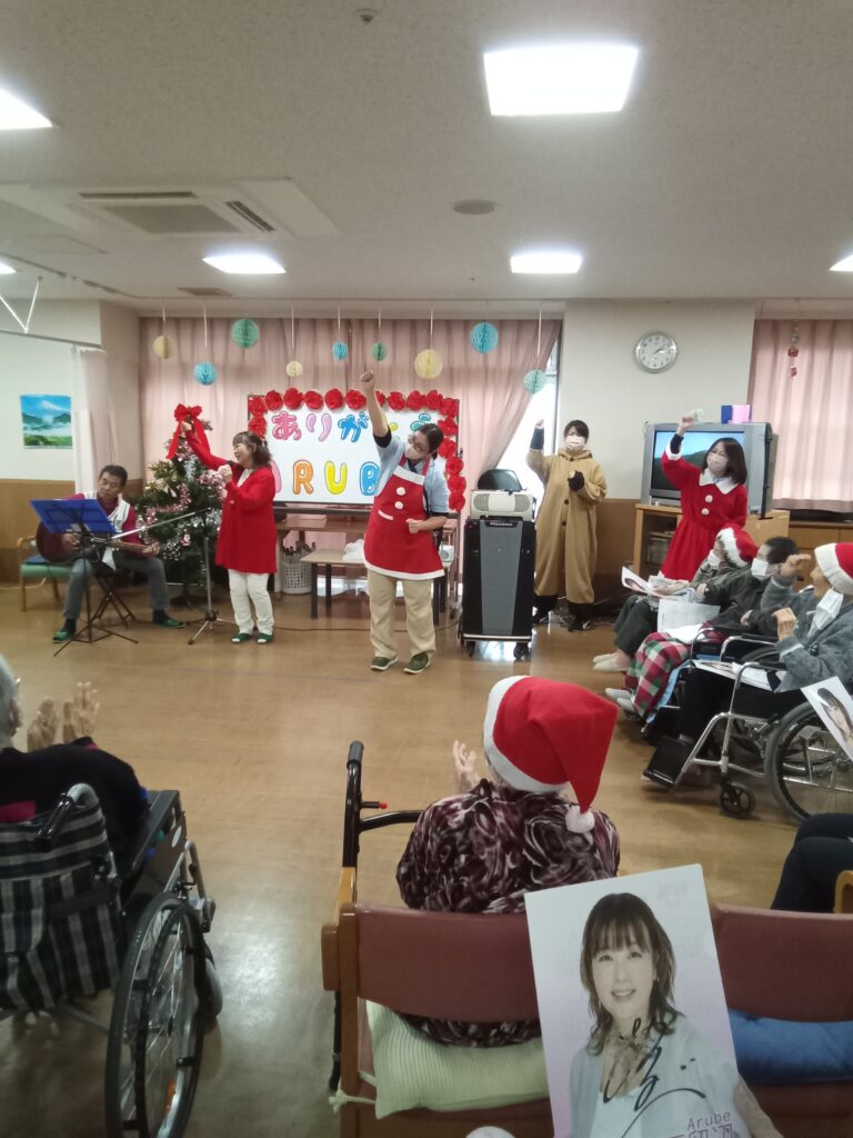 昨年のことですが、12/25クリスマスに「横須賀出身の女性歌手、亜留辺さん」が来苑し、興寿苑のためにとクリスマスコンサートを開催してくれました!