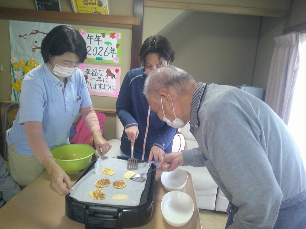 2026年3月2日 / 最終更新日 : 2026年3月2日 kojuen0003 お知らせ 手作りおやつレク(認知症対応型デイサービス) 先日実施した、手作りおやつレク「あんこ・かぼちゃあんのどら焼き」の様子です!! どら焼きの皮作り 餡作り 2色(あんこ・かぼちゃあん)のどら焼きをつくりました(≧▽≦) 完成品はこちら👇👇👇
