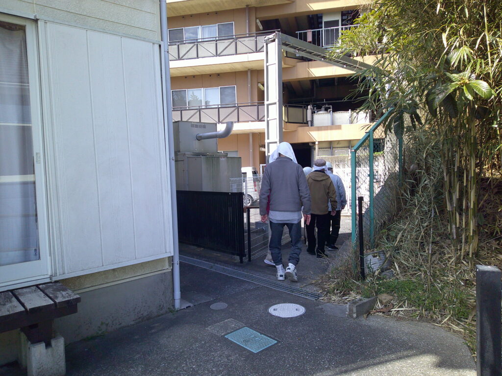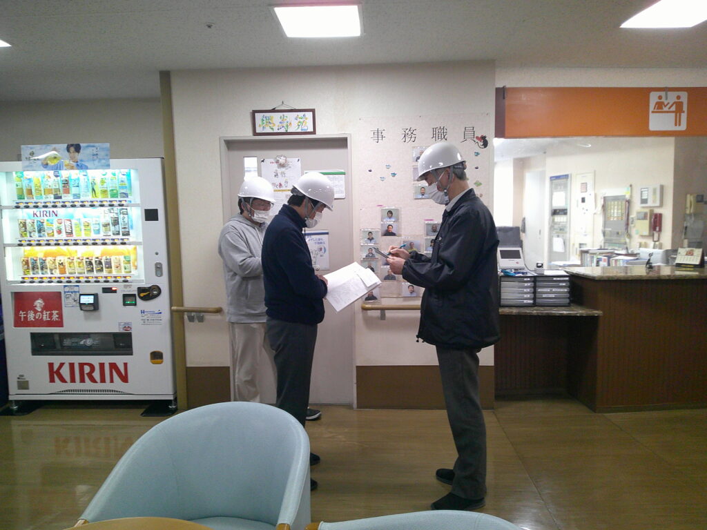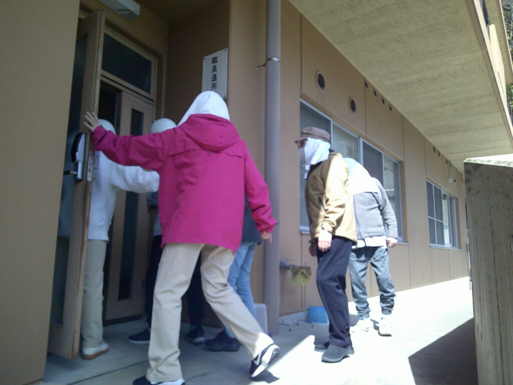 別棟から本館へ避難誘導します