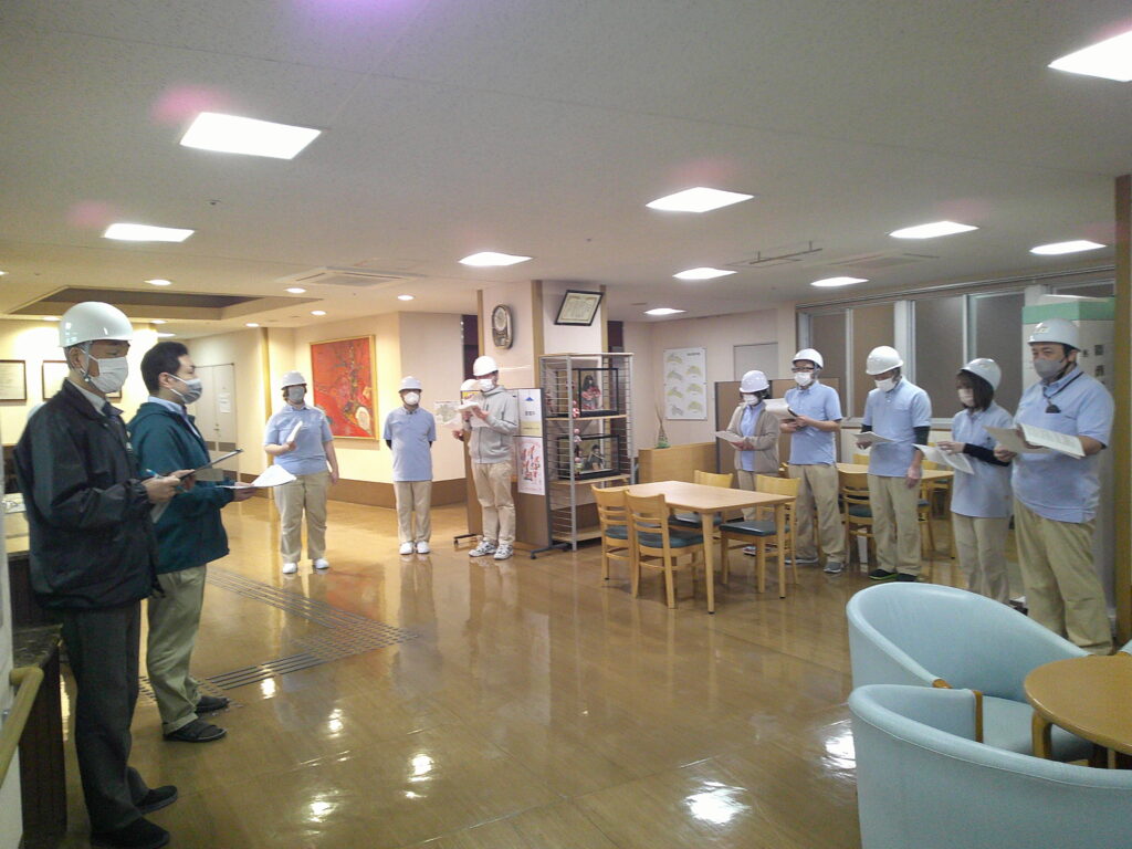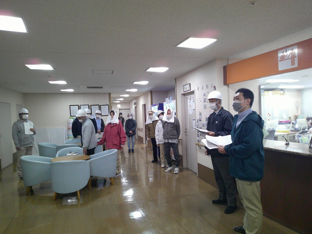 今回は日中想定での訓練でしたので、もちろん老人デイサービスと認知症対応型デイサービスも参加しました。